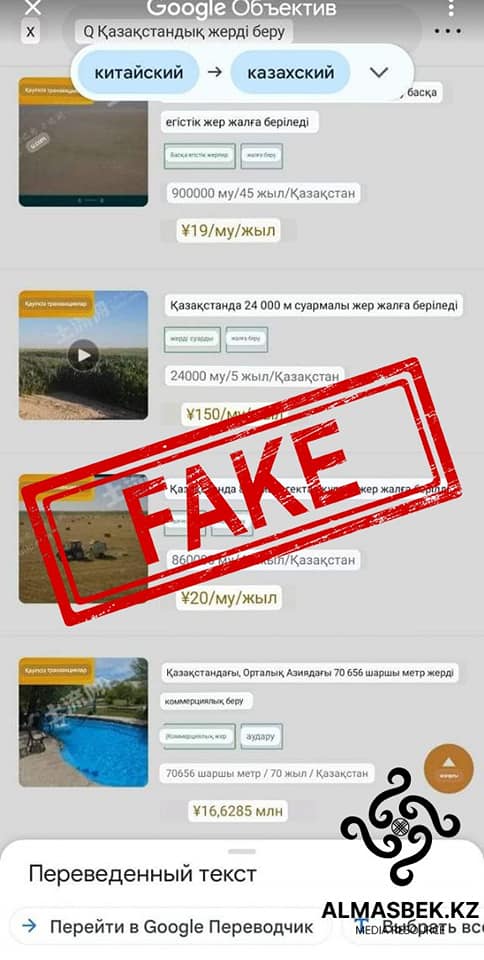 В социальных сетях появилось сообщение о том, что на китайских сайтах идет открытая торговля казахстанскими сельскохозяйственными угодьями, сообщает stopfake.kz.