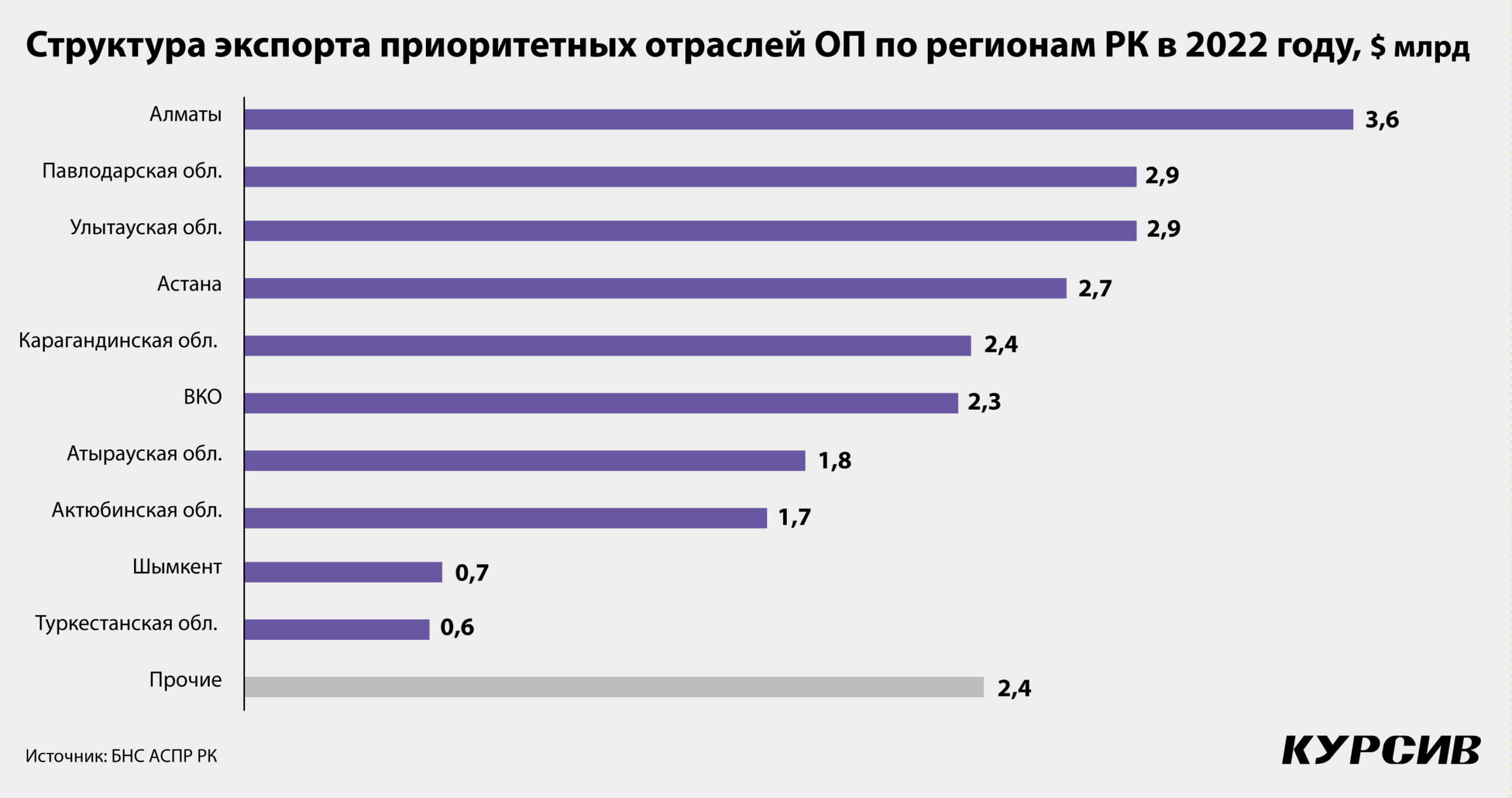 90%. Лидер 2022 года – Алматы, который экспортировал продукции на $3,6 млрд, за южной