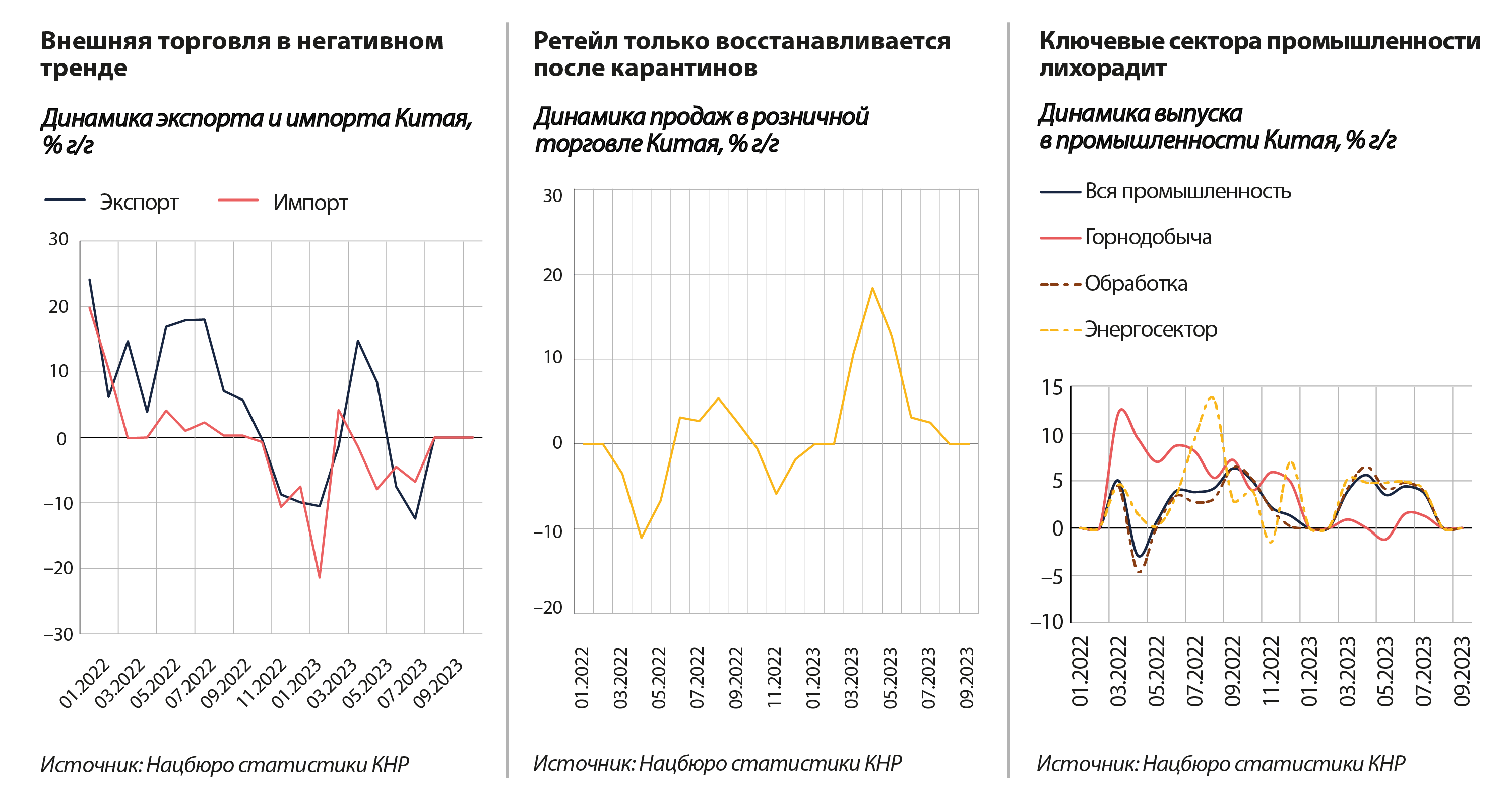 Нарастание кризисных явлений в китайской экономике на нашей внешней торговле пока не отразилось. Вероятность того, что балансовый кризис в секторе недвижимости и у кредитовавших этот сектор банков приведет к обвалу выпуска востребованных в РК китайских одежды и бытовой техники, оборудования и комплектующих, крайне низка.