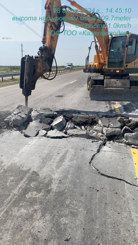 Второй случай произошел 26 июня в Жамбылской области — на участке автодороги Тараз – Кайнар (244 км) образовался дефект на цементобетонном покрытии. Его устранили в течение двух часов без ограничений для движения автотранспорта.