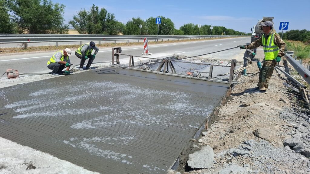 «КазАвтоЖол» ремонтируют дефекты на двух автодорогах в Жамбылской и Туркестанской областях, которые появились из-за аномальной жары. Одна из бетонных плит поднялась на трассе Самара – Шымкент, а вторая — на участке автодороги Тараз – Кайнар.
