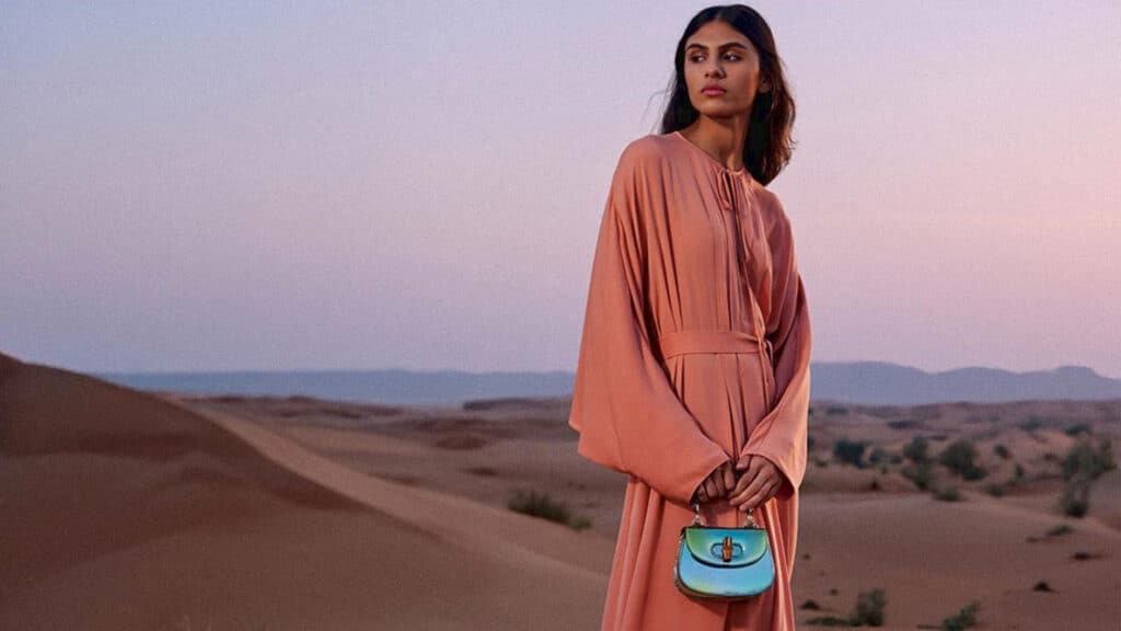 Gucci по случаю мусульманского поста перешел на арабский язык. «Gucci Nojum» — так называется капсульная коллекция итальянского бренда, то есть, в буквальном переводе с арабского, «Звезда Gucci». В одном из последних творений теперь уже бывшего креативного директора марки Сабато де Сарно исследуется, согласно описанию на сайте gucci.com, «двойственность света и тени, песка и неба» — что бы это не означало, промо-кампания на фоне этих самых песка (пейзажей пустыни) и закатного неба получилась очень эффектной.