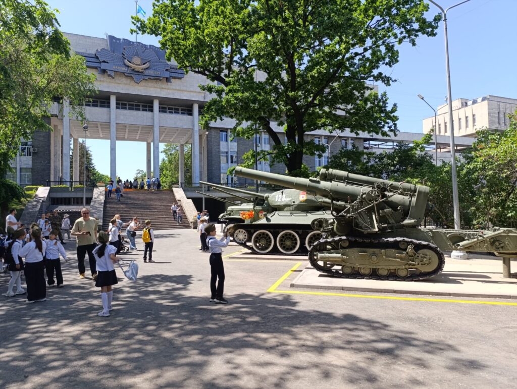 Вчера около Дома армии в Алматы открылась экспозиция Музея боевой славы. Большинство экспонатов расположились под открытым небом со стороны улицы Калдаякова. Здесь можно увидеть: