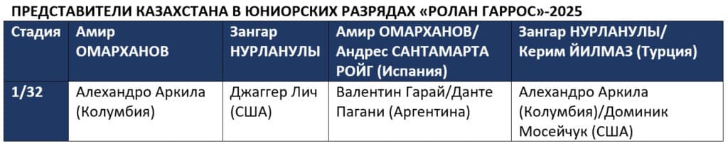 Кроме того, сегодня стали известны первые соперники наших парней (казахстанки на сей раз не участвуют) в юниорском турнире «Ролан Гаррос». Он по традиции проходит параллельно со второй неделей основного.