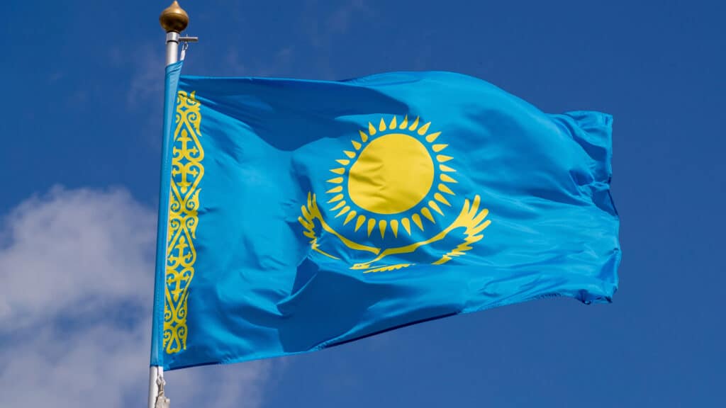 Флаг Казахстана — это небесно-голубое полотно с золотым солнцем и парящим степным орлом. Цвет символизирует открытость, миролюбие и приверженность тюркским корням, в которых небо — сакральный элемент. Солнце с 32 лучами в форме зерен олицетворяет изобилие, свет и жизнь. Орел — не просто птица, а символ независимости, силы и широты национального духа. Вдоль древка тянется национальный орнамент, напоминающий о преемственности культурных традиций.