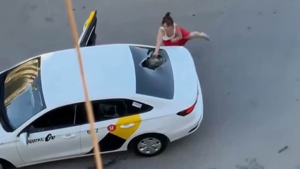 В социальных сетях появилось видео из Шымкента, на котором женщина разбивает боковые и заднее стекла автомобиля. На кадрах видно, как она наносит удары кирпичом по машине с наклейками сервиса Яндекс.Такси.