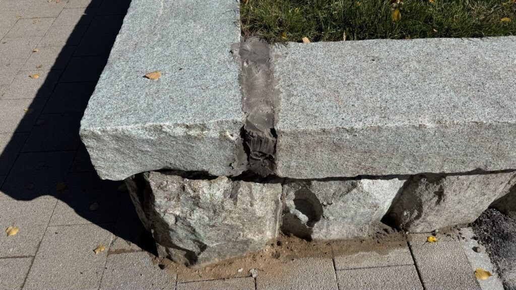 Правда, зазоры между плитами, которые, судя по всему, перекладывали строители, заделали очень неумело и топорно. «Пазл не сложился», и все промежутки попросту замазали бетоном.