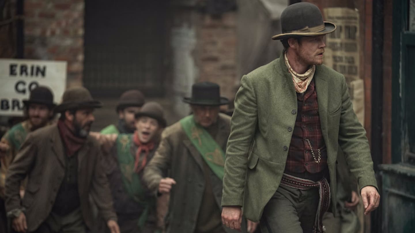 Сериал резво стартует и не выдыхается до самого конца. Энергичность «Дома Гиннесса» создается за счет бойкого клипового монтажа, сопровождающегося современными песнями ирландских исполнителей — от Kneecap до Fontaines D.C. Иногда события перескакивают через приличные промежутки времени, не давая сюжету топтаться на одном месте, а зрителя развлекают периодически возникающие титры в духе Гая Ричи, где денежные суммы, которыми ворочают Гиннессы, переводятся в сегодняшний эквивалент, словно подчеркивая, что именно является здесь движущей силой.