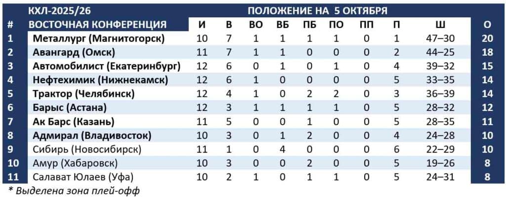 Завоевав одно очко, «Барыс» остался шестым на Востоке. «Сибирь» с 10-го места поднялась на 9-е.