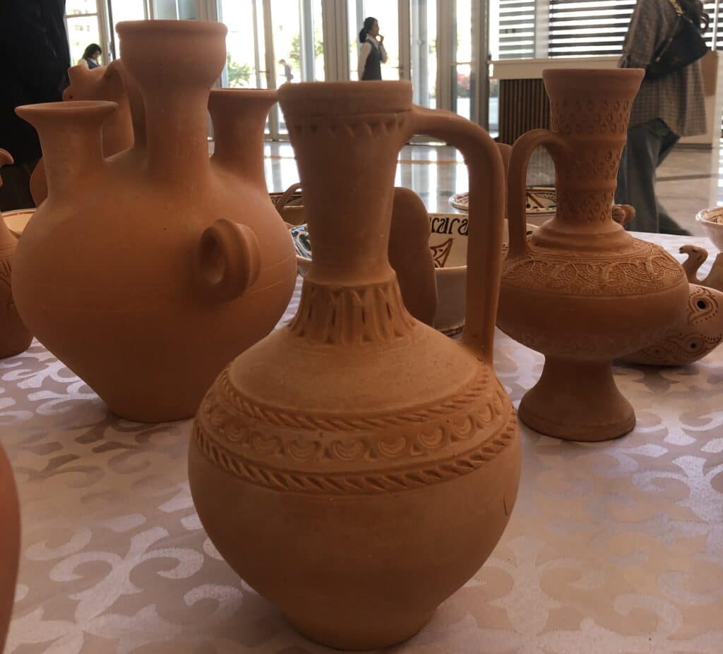 И, наконец, едва ли не самое главное требование, о котором уже говорилось выше: Туркестану, прошедшему длинный и сложный путь от «древнего гончарного кластера» до, ближе к ХХ веку, почти полного отказа от производства керамики, предстояло доказать, что сегодня ремесленные традиции возрождаются. И одним из лучших свидетельств стали даже не профессиональные мастерские, а гончарные круги – они стоят по всему Туркестану: в Конгресс-холле и библиотеке, кафе и ресторанах, институтах и Дворце школьников.