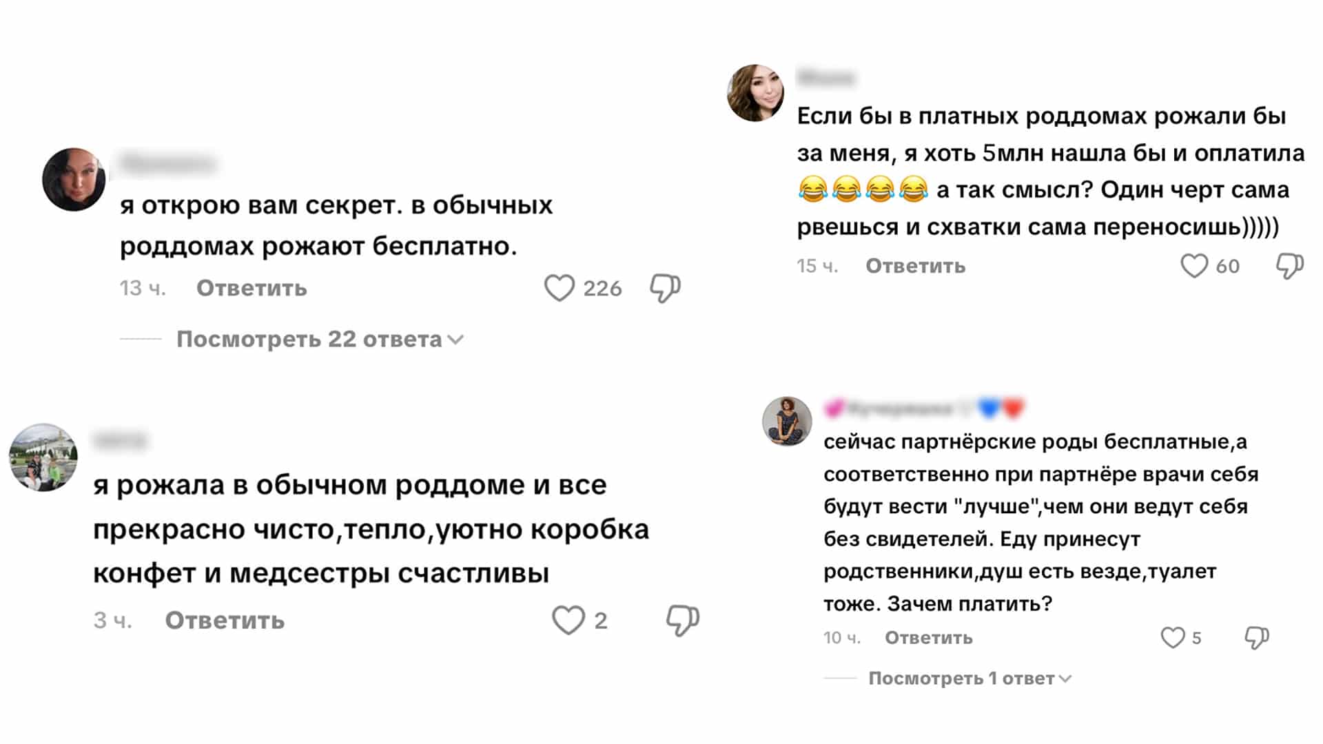 В комментариях пользователи удивились высокой стоимости. Некоторые делились шутливыми советами о том, как можно родить с комфортом дешевле или даже бесплатно.
