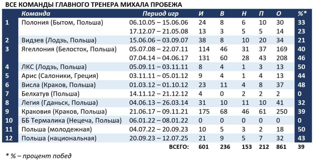 Польский тренер Михал Пробеж возглавит футбольную сборную Казахстана. Как утверждает kanalsportowy.pl со ссылкой на известного в Польше журналиста Матеуша Борека, 53-летний специалист достиг согласия с КФФ относительно условий контракта. Официально о назначении объявят в ближайшее время.