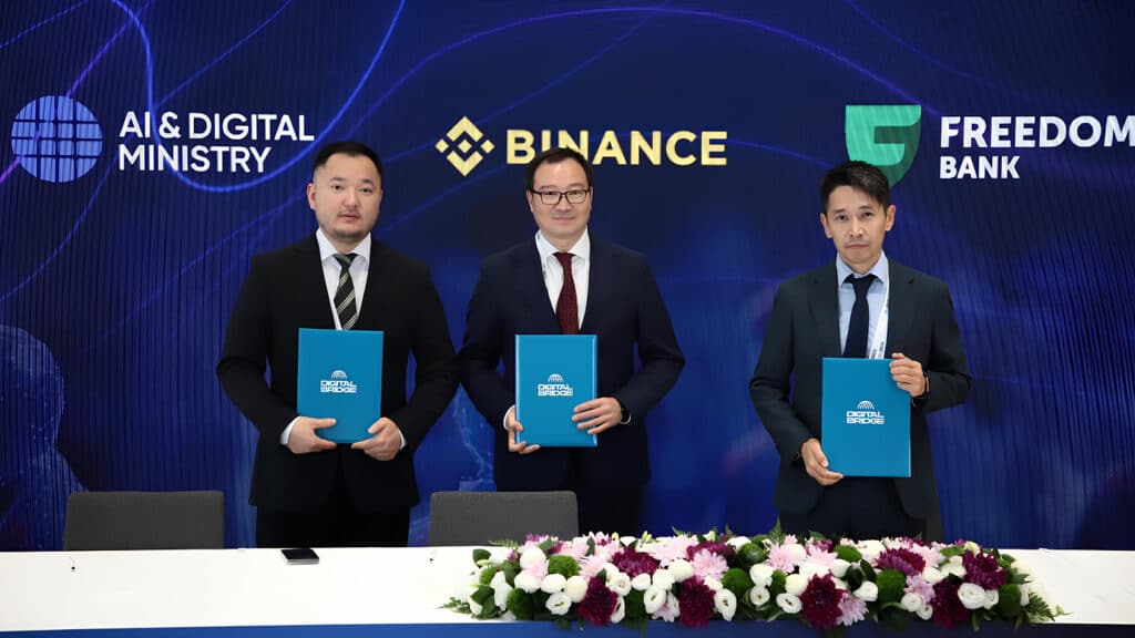 «Министерство искусственного интеллекта и цифрового развития РК, компания «Binance» и АО «Фридом Банк Казахстан» подписали трехсторонний меморандум о сотрудничестве, направленный на развитие цифровых финансовых технологий и криптовалютных решений в Казахстане», – говорится в опубликованном сообщении.