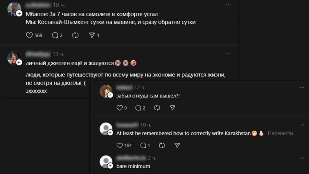 Ранее казахстанские зрители заметили, что Мбаппе часто плевался во время матча с «Кайратом» на Центральном стадионе. Некоторые потребовали оштрафовать его за «загрязнение мест общего пользования».
