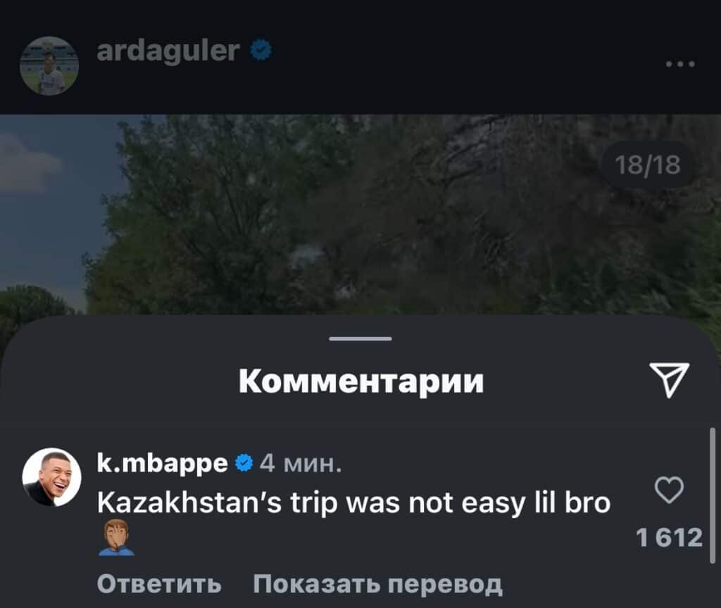 Публикация быстро разлетелась по соцсетям. Некоторые пользователи решили, что футболист намекнул на то, будто ему не понравилось в Казахстане. Однако речь шла именно о трудной дороге. Тем не менее форвард «Реала» уже удалил комментарий.