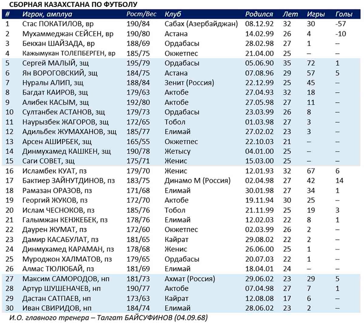 Как отмечает Аманбаев, в сборную Казахстана прибыл только один игрок «Кайрата» – полузащитник Дамир Касабулат.