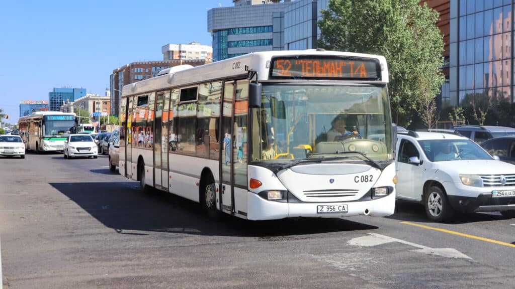 В Астане стоимость проезда в общественном транспорте, который в городе с населением более 1,5 млн человек представлен только автобусами, составляет 110 тенге. Оплата наличными уже несколько лет не принимается. Пассажиры платят за проезд с помощью QR, банковской картой или транспортной картой принадлежащей акимату компании CTS (ранее «Астана ЛРТ»).