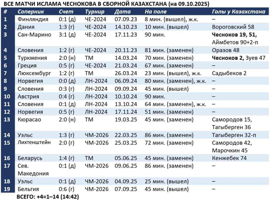 Таким образом, до отъезда в «Хартс» Чеснокову осталось сыграть всего пять матчей. Два за «Тобол» – с «Жетысу» (13 октября) и «Улытау» (26 октября). И три за сборную – с Лихтенштейном (10 октября), Северной Македонией (13 октября) и Бельгией (13 ноября). Затем законный трудовой отпуск – и в Шотландию.