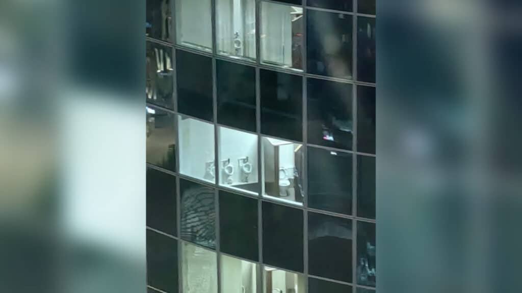 Находясь в другом здании, Бейбит Алибеков сфотографировал офис КТЖ снаружи. Здание выполнено из стекла, поэтому любой прохожий может видеть, что происходит внутри – вплоть до помещений санитарного назначения. Именно эти кадры и опубликовал блогер.