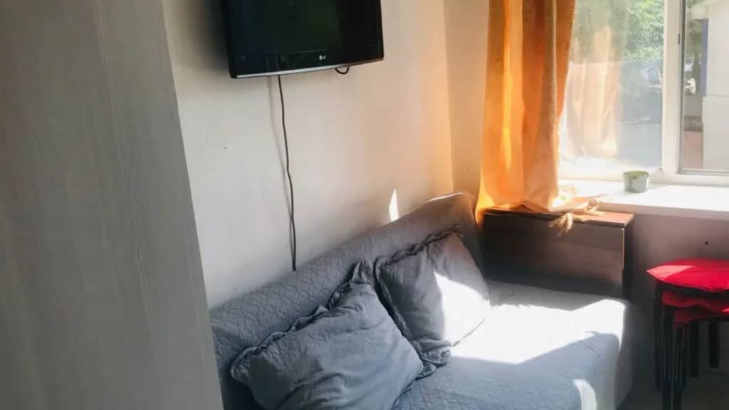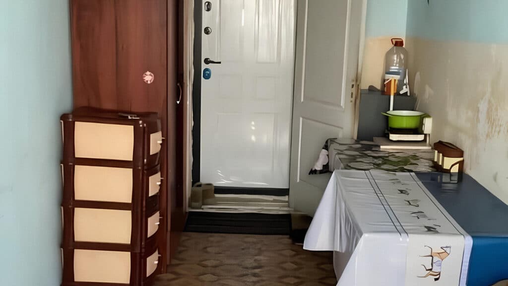 Еще один вариант – квартира площадью 12 квадратных метров за 4,2 млн тенге. Дом старый, 1984 года постройки. Помещение совмещает спальню и кухню, но без душа и туалета. Все это общие удобства, как в типичных «малосемейках» советского времени.