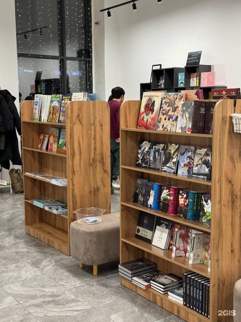 А по адресу Айманова, 44 находится, пожалуй, одно из самых самобытных книжных мест столицы — букинистический магазин Kitapashar. Его создала девушка Арайлым, энтузиастка, которая без спонсоров и инвесторов превратила свою любовь к книгам в атмосферное место.