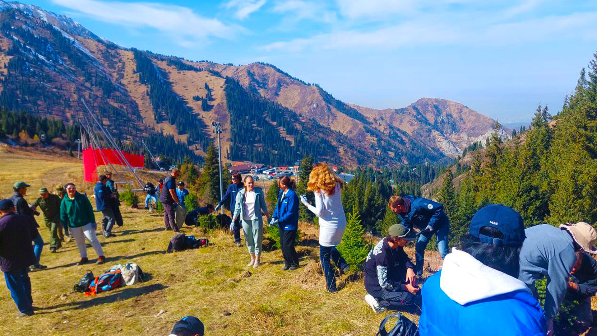 Сотни редких елей посадили алматинцы на горно-лыжном курорте «Шымбулак»