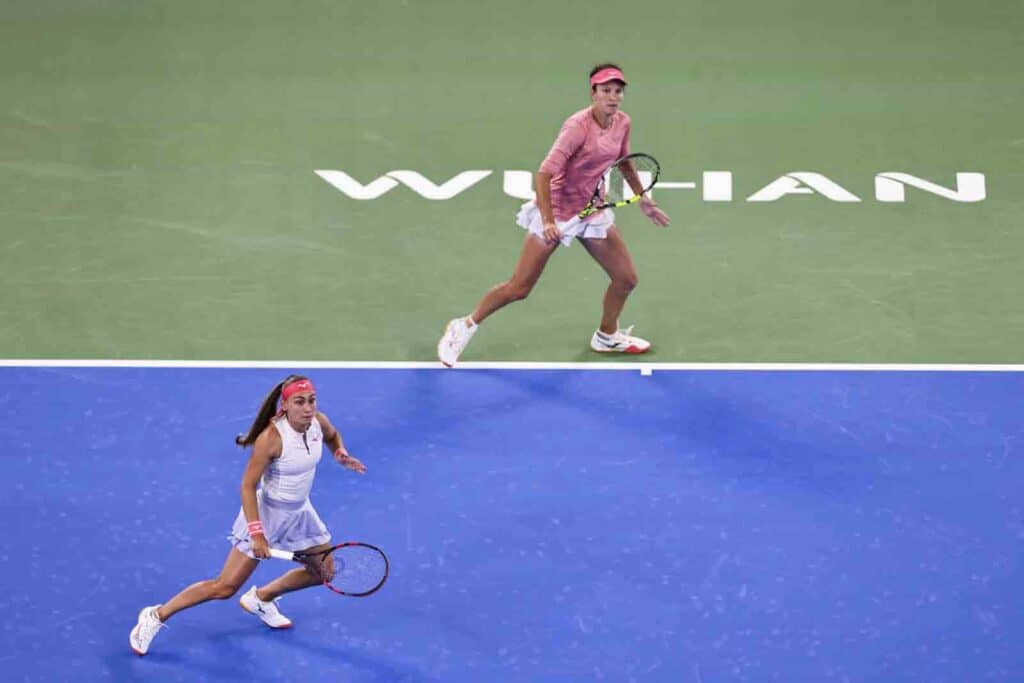 Китаянка с канадкой прошли в четвертьфинал без борьбы. Поскольку пятая пара мира Сара Эррани/Жасмин Паолини снялась с турнира. Жасмин решила сосредоточиться в Ухане на одиночке. И не зря.