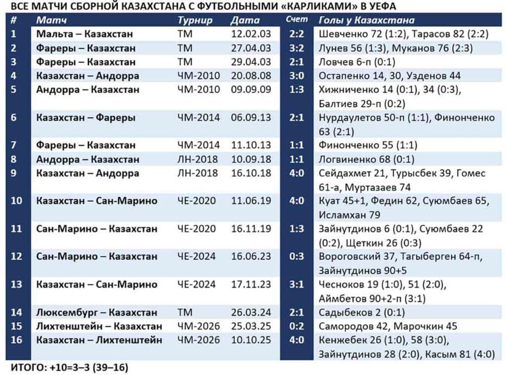 После этого казахстанцы не раз могли довести счет до сверхкрупного. Но и так получилось неплохо. В одной игре наша команда забила больше голов, чем за весь отборочный цикл.