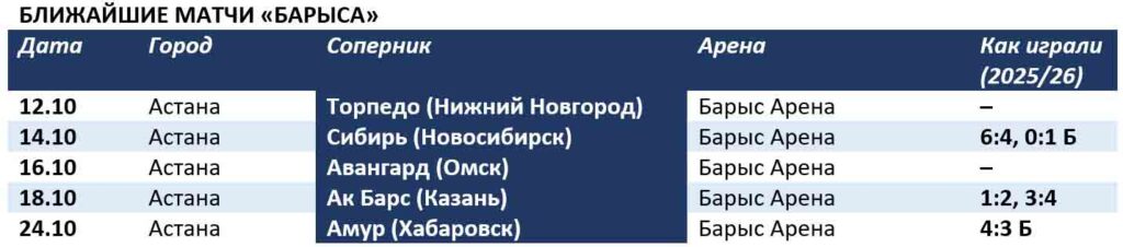 Набрав одно очко за поражение за пределами основного времени, «Барыс» поднялся на седьмое место в турнирной таблице. Однако по потерянным очкам казахстанский клуб уже последний на Востоке. Предстоящая домашняя серия очень кстати. Пора набирать очки.
