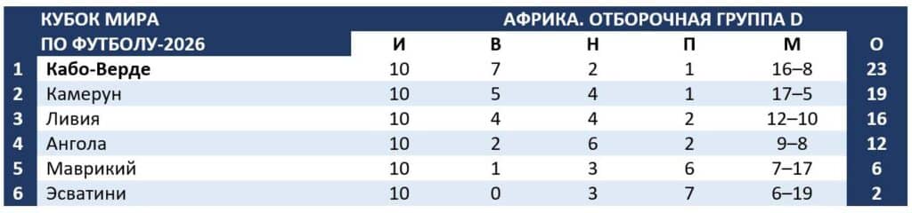 Победив, кабо-вердийцы опередили в таблице четвертьфиналиста ЧМ-90 Камерун, восемь раз игравшего на Кубках мира.