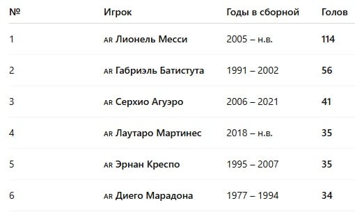Минувшей ночью Лаутаро оформил дубль за национальную команду в товарищеском матче против Пуэрто-Рико (6:0). В результате на его счету стало 35 мячей, как и у завершившего карьеру Эрнана Креспо, и теперь они делят четвертое место в списке лучших снайперов альбиселесте. Покойный Марадона (34 гола) опустился на шестую строчку.