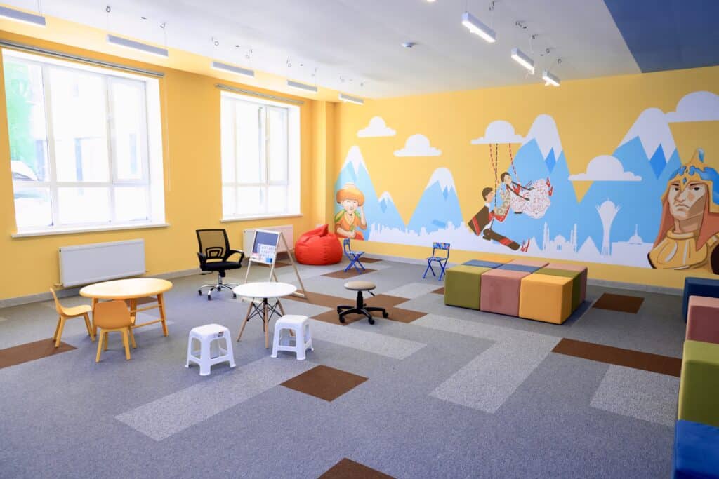 Дизайн кабинетов служит еще одной задаче – обучая вдохновлять. В кабинетах истории – изображения ханов Керея и Жанибека, лидеров Алаш-Орды Алихана Букейханова и Ахмета Байтурсынова. В других кабинетах оформление тоже соответствует изучаемым предметам, в игровых зонах для дошкольников созерцание рисунков на стенах погружает в мир детских сказок и увлекательных приключений, а в спортивных залах надпись «Мен чемпион боламын» – как мотиватор будущих рекордов. В Samruk-Kazyna Construction уверены: такое оформление формирует уважение к собственным корням, вызывает интерес к науке, культуре, что способствует более осознанному обучению.