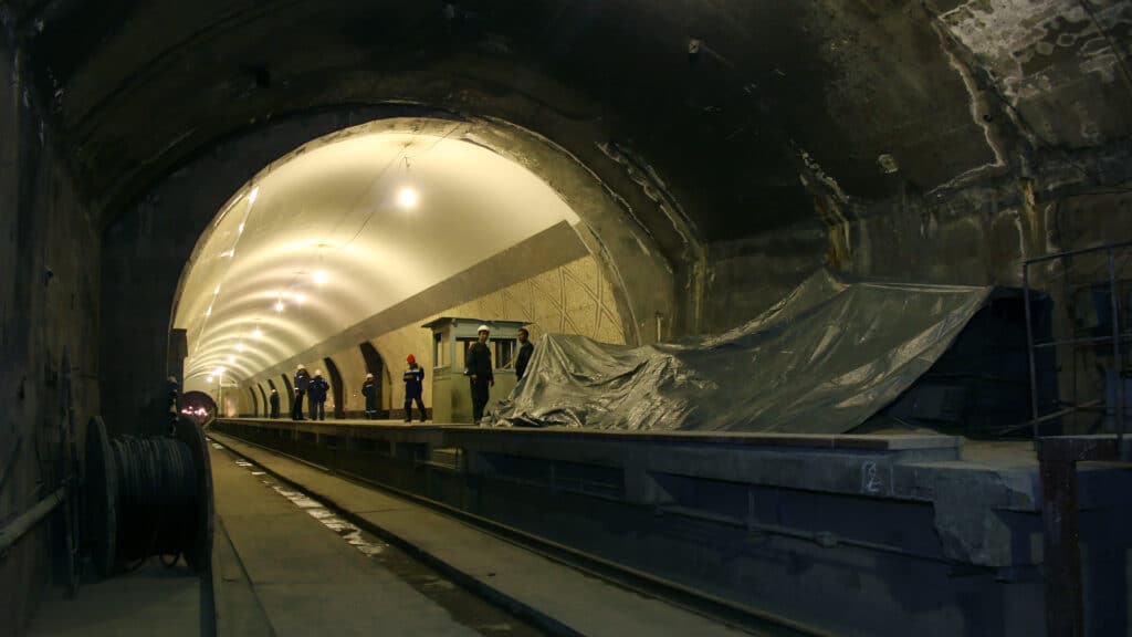 На данный момент в одном тоннеле завершается укладка «бесшумных» рельсов, во втором тоннеле осталось пройти 480 метров. Проходка тоннелей ведется круглосуточно с помощью специального комплекса, который движется со скоростью до 4 метров в сутки. На объекте работают более 400 специалистов в три смены.