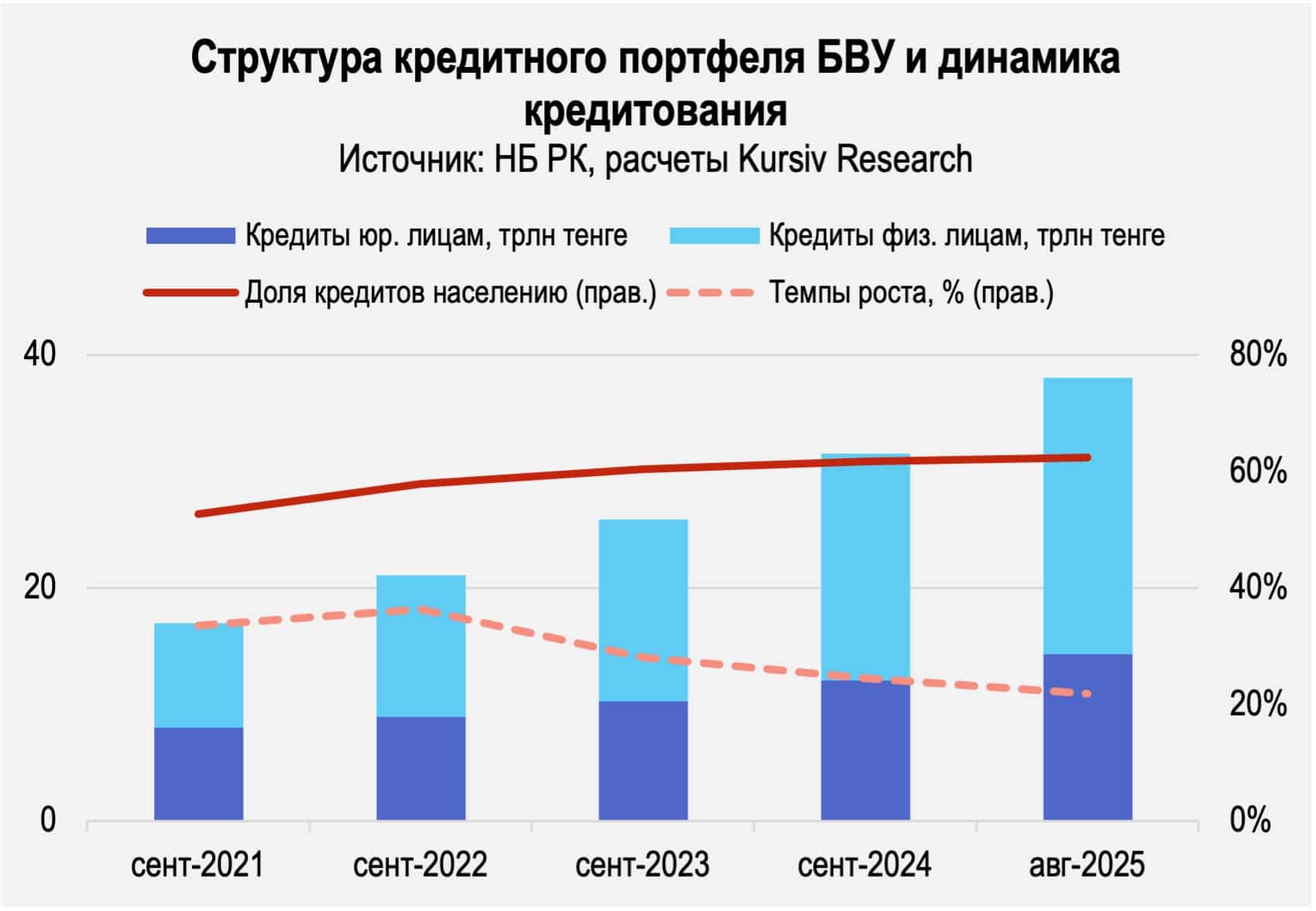 Вторым фактором является повышение базовой ставки НБ РК, которое в любом случае увеличит стоимость кредитования и, вероятнее всего, станет сдерживать торговлю товарами длительного пользования. По данным Нацбанка, кредиты населению на цели, не связанные с предпринимательской деятельностью, по итогам августа 2025 составили более 62% кредитного портфеля БВУ.
