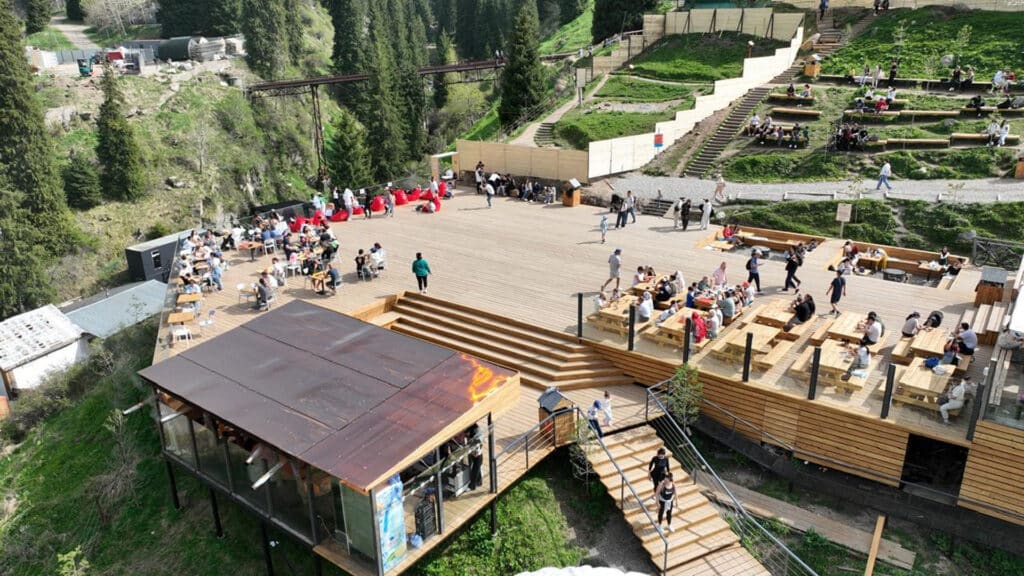 Помимо самого перехода, на Горельнике возводят детский спортивно-образовательный клуб «Мың бала». Идея проекта — создать круглогодичное пространство, где можно совмещать отдых, спорт и экологическое просвещение.