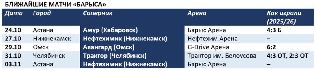 Обидное поражение оставило «Барыс» на седьмом месте с малоприятными перспективами понижения. «Амур», «Адмирал» и «Сибирь» опережают казахстанцев по потерянным очкам.