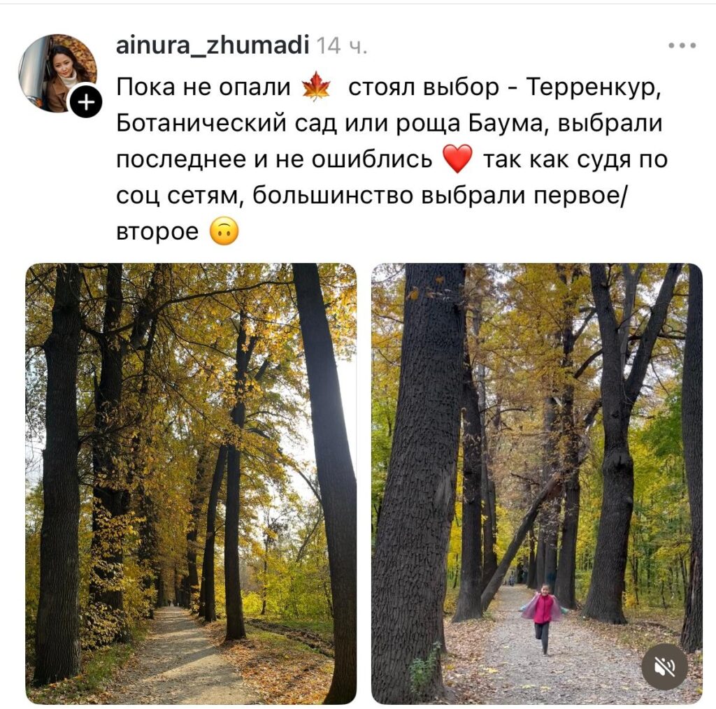 «Алматы, ты сияешь, но людей на Терренкуре, как в Black Friday», «Пока в Алматы тепло, мы с мужем и еще пару миллионов алматинцев — решили пройтись по Терренкуру», «У всех как будто чат единый, где все решают, куда пойти, полАлматы там», «Люди, ну вы чего, никогда осень не видели?» — сетуют пользователи Threads.