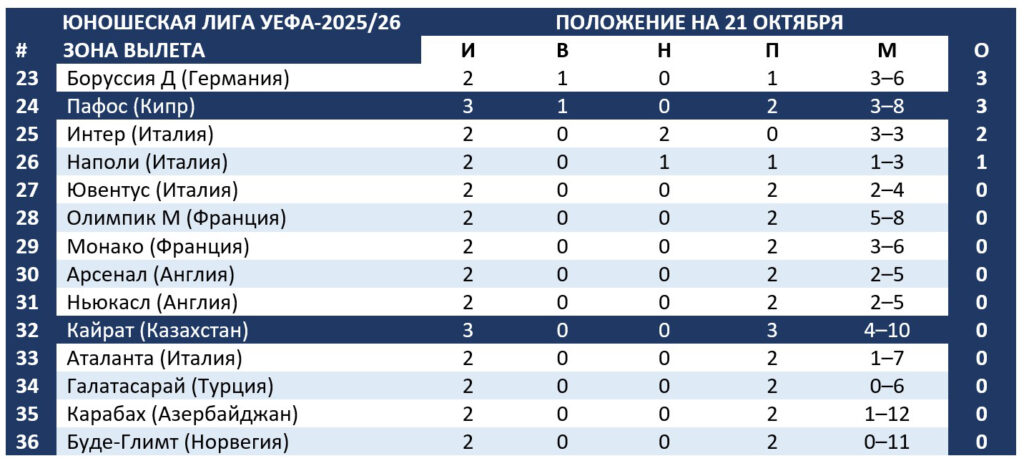 Третье подряд фиаско «Кайрата» (U19) оставляет команде немного шансов на выход в плей-офф. «Пафос» же, напротив, приблизился к зоне 1/16 финала. Правда, у конкурентов матч в запасе.