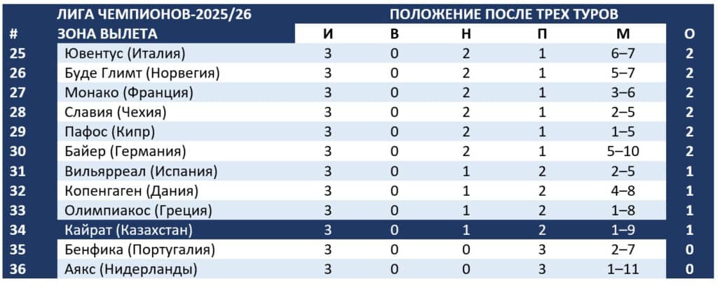 Азербайджанская сказка закончилась? А, может, просто взяла паузу? До конца года «Карабаху», вылетевшему из топ-8 таблицы, предстоят матчи с «Челси», «Наполи» и «Аяксом». Ближайший календарь «Атлетика» тоже непрост – «Ньюкасл», «Славия», «ПСЖ». При этом баски покинули, наконец, предпоследнее место в общей таблице (см. внизу). И взлетели на 21-е. Попутно подвинув «Кайрат» на ступеньку вниз.