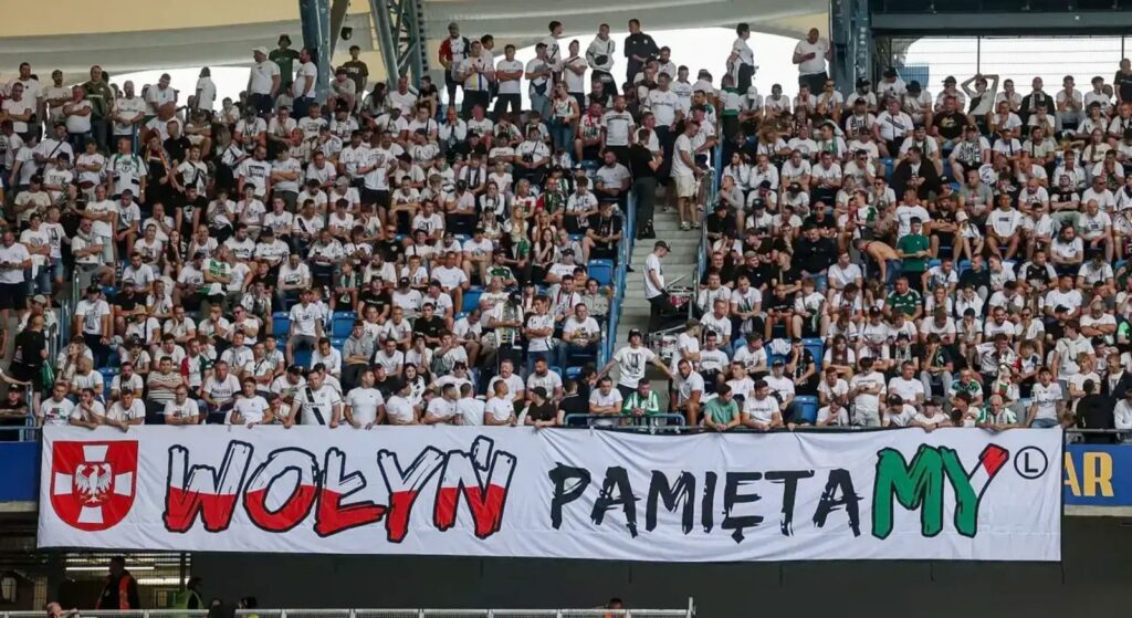 Ультрас «Легии» попытались пронести на стадион баннер с надписью «Wołyń. Pamiętamy» («Волынь. Мы помним»), прямо отсылающей к массовым убийствам польского гражданского населения украинскими националистами в 1943 году. Представители «Шахтера» как организаторы матча запретили охране пропускать плакат с политическим содержанием. Фанаты в знак протеста отказались заходить внутрь без транспаранта.