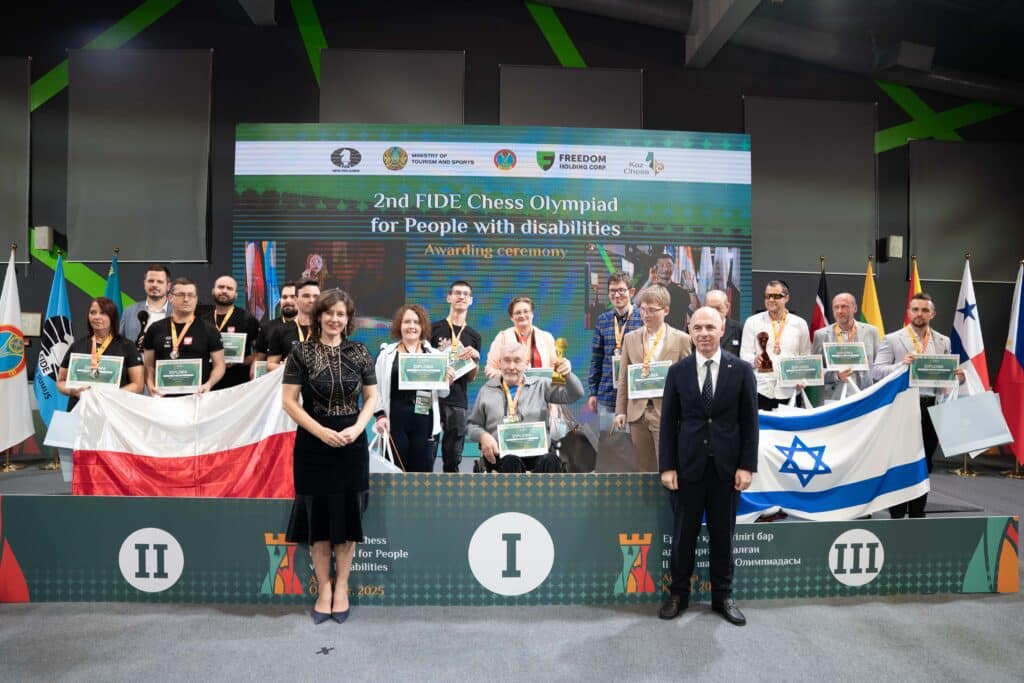 25 октября 2025 года в Астане завершилась Вторая шахматная Олимпиада для людей с особыми потребностями. Турнир в формате «4 на 4» собрал 34 команды из 29 стран. Между собой соревновались игроки с нарушениями слуха, зрения и опорно-двигательного аппарата.
