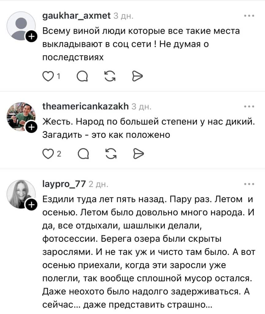 Жители Алматы в соцсетях призывают не публиковать координаты и видео с живописными «секретными» локациями, которые этой осенью стали особенно популярны. По словам пользователей, массовый наплыв туристов и блогеров лишил эти места прежнего очарования — теперь здесь шумно, пыльно и грязно.