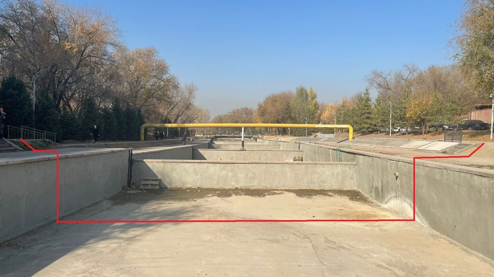 Алматинцы возмущены тем, что экоплитки на реке Есентай закатали в бетон