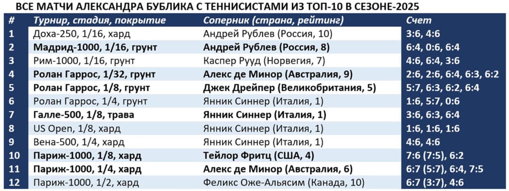 Александр Бублик (16) остановился в шаге от финала Rolex Paris Masters-2025. Оставив в Париже не у дел двух теннисистов из топ-10 мирового рейтинга, казахстанец споткнулся на третьем. Феликс Оже-Альясим (10) из Канады выиграл в двух сетах 7:6 (7:3), 6:4 и квалифицировался на Итоговый турнир года в Турин.