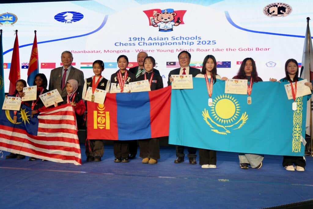 Сборная Казахстана успешно выступила на 19-м чемпионате Азии среди школьников по шахматам Asian Schools Chess Championships 2025, который проходил с 25 октября по 1 ноября в Улан-Баторе.