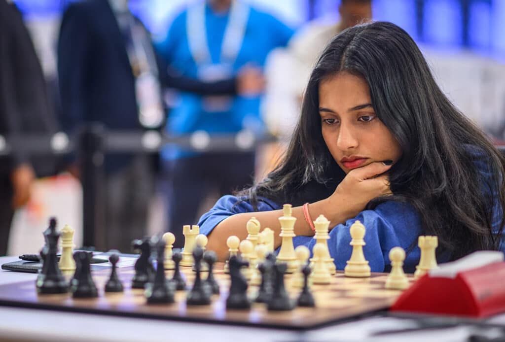 Подобный женский турнир, проходивший в июльском Батуми, выиграла Дивья Дешмух (2478). Индийский гроссмейстер попытала силы в мужской компании на Гоа. И в первом же раунде проиграла обе партии греку Стоматису Коркулосу-Ардитису (2583).