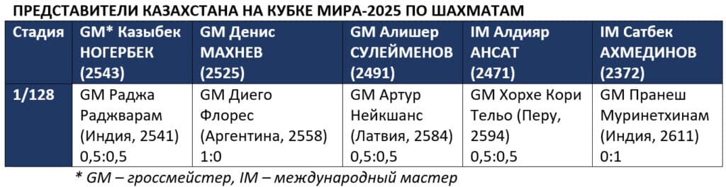 206 шахматистов из 82-х стран фигурируют в турнирной сетке Кубка мира-2025 по нокаут-системе. Все казахстанцы начали соревнования с первого раунда. Со второго стартуют 50 лучших по рейтингу.
