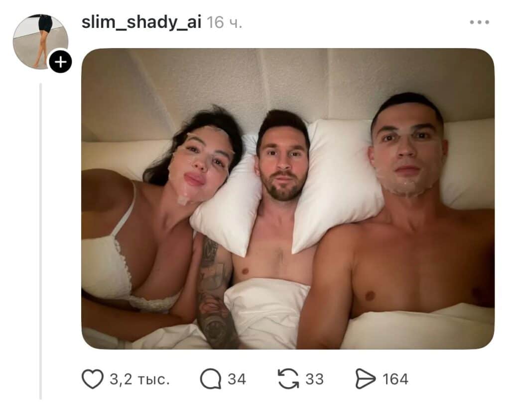 Комментаторы также начали активно создавать мемы с помощью искусственного интеллекта, превращая снимок Джорджины и Криштиану в повод для новых интернет-шуток.