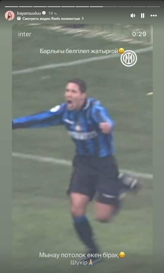 На кадрах – футбольный матч с принципиальным соперником «Интера» – «Миланом». Бывший игрок Диего Симеоне пробегает через всю защиту соперника и забивает гол. Празднование от забитого мяча наложено на ритмичную песню Aua rai казахской исполнительницы BAYANSULU – Баянсулу Сагиндыковой. Клуб также прокомментировал на казахском сам ролик.