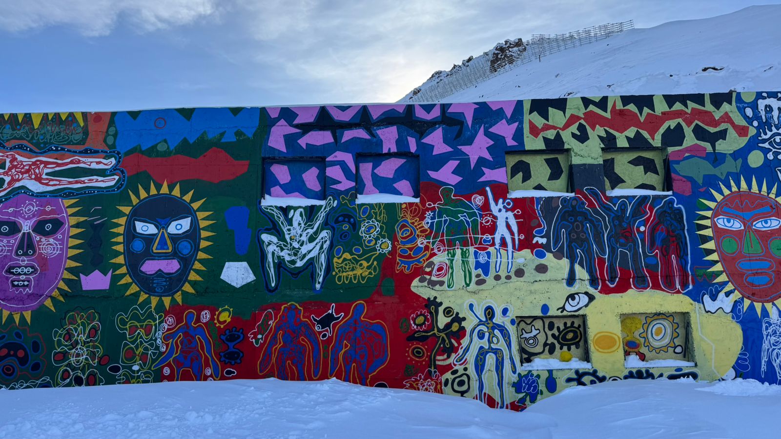 Мурал казахстанского художника украсил самую высокую точку горнолыжного курорта «Шымбулак». Kursiv LifeStyle рассказывает об искусстве среди алматинских гор.